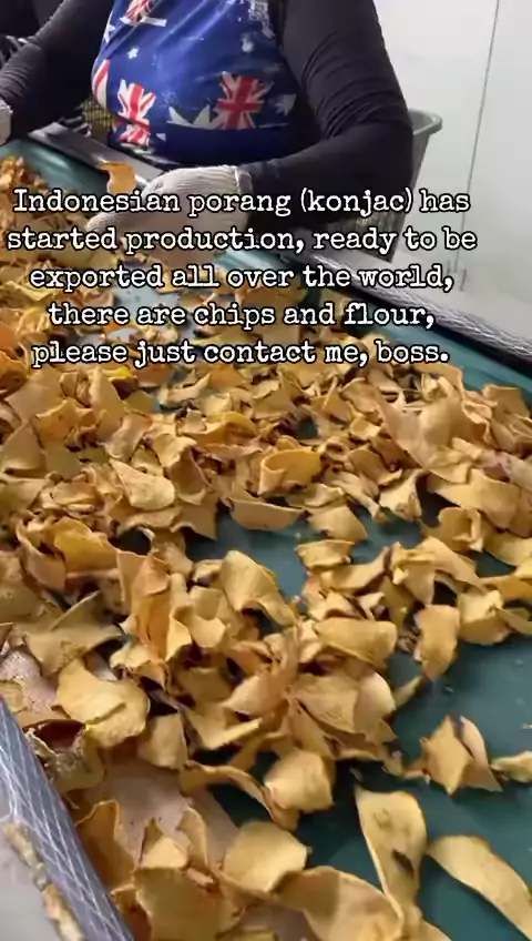 Indonesian porang (konjac) has started production, ready to be exported all over the world, there are chips and flour, please just contact me, boss.#konjac #konjacjelly #konjacsponge #konjacnoodles #konjacgum γ‚šviral #viralvideo #promo #urangawak #porang