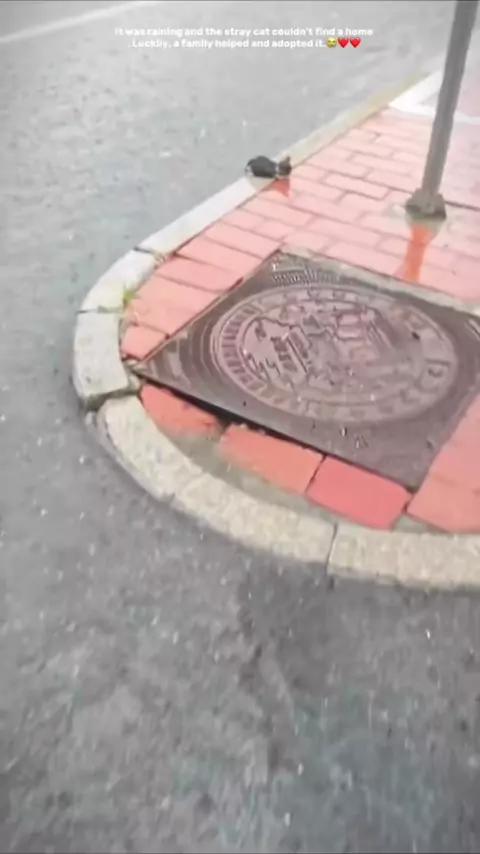 Mas estava chovendo e o gato de rua não conseguia encontrar o caminho para casa. Felizmente, uma família a ajudou e a adotou. # cuteanimals # cat # catsof # cute #
