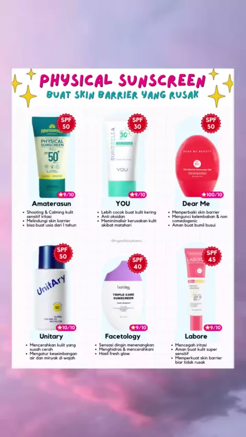 Ini nih rekomendasi physical sunscreen yang cocok buat skin barrier yang lagi rusak nihhh###physicalsunscreen#sunscreen#sunscreenviral#sunscreenreview#sunscreentips#sunscreenlokal#amaterasunsunscreen#dearmebeautysunscreen#unitarysunscreen#facetologysunscreen#laboreskinexpert#sunscreenskincare#skinbarrierrusak