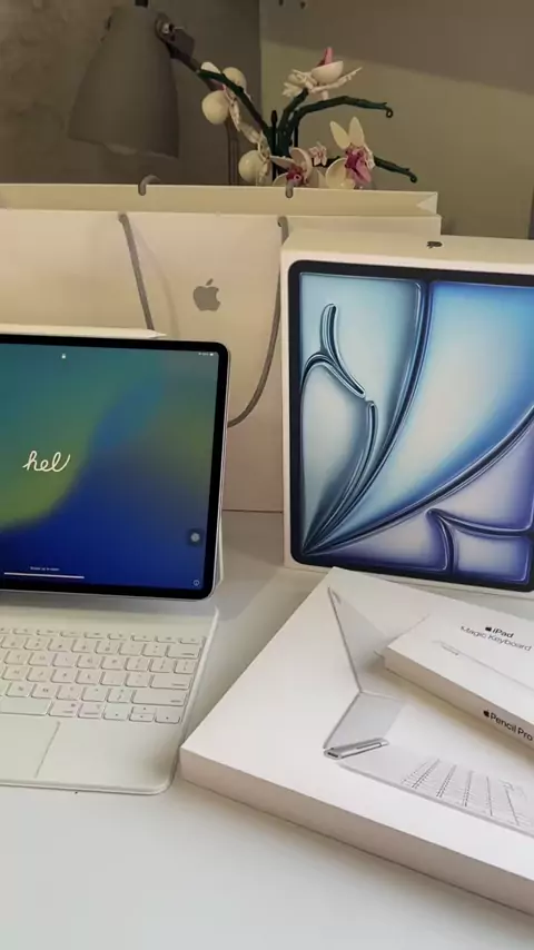Blue iPad Air M3 13 inch unboxing with Magic Keyboard & Apple Pencil Pro, so pretty🥹💙 #iPad #iPadAirM3