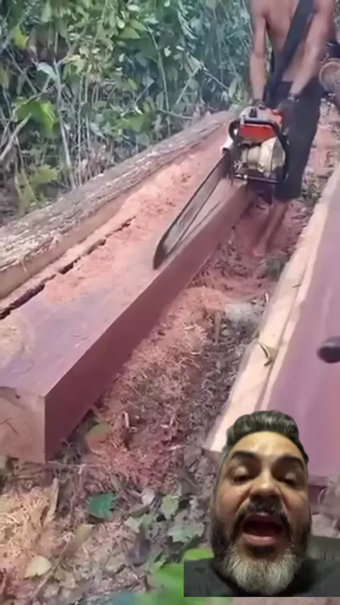 Este sabe usar uma motosserra! Olha a facilidade que ele tira um tábua perfeita 😍 #exploring #bit #árvores #motoserra #pyrographyart