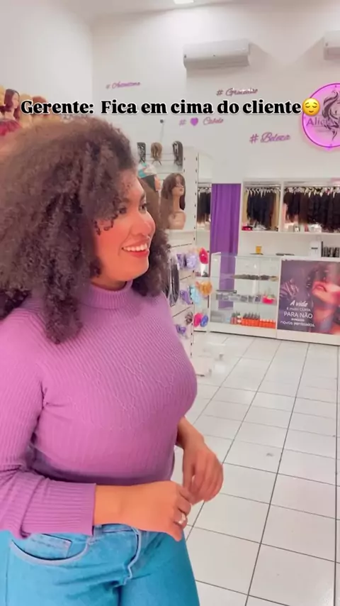Disse que ia só dar uma olhadinha… agora tem a consultora grudada! Coisas de Alicia Hair 🤣🛍️ #Clientes #AliciaHair #Engraçado #Explorar #Apliques