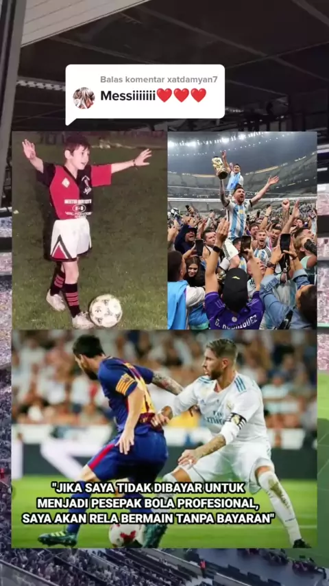 Membalas @xatdamyan7 Jika tidak dibayar menjadi pesepakbola profesional, saya rela bermain tanpa bayaran. Tujuan utama bukan uang tampi impian 👑#messi#goat
