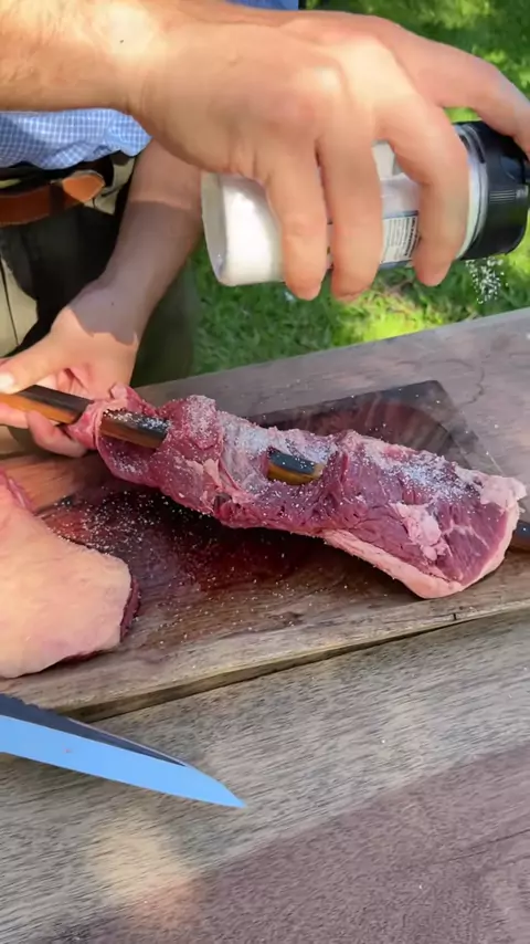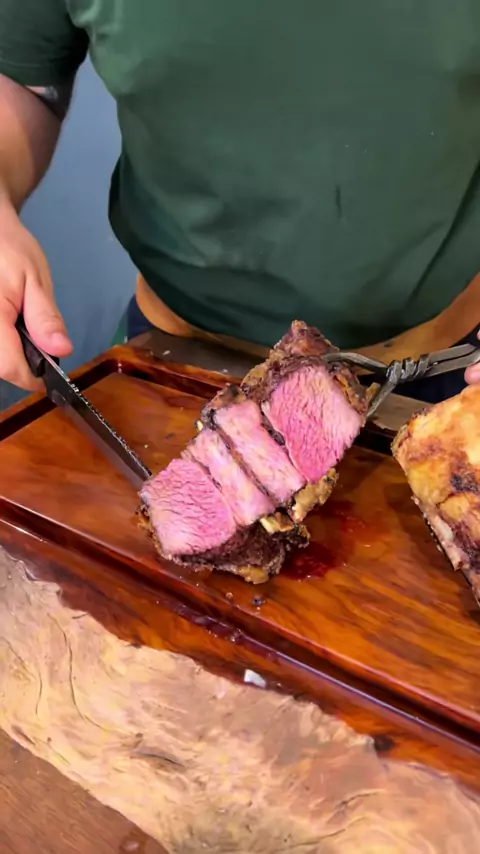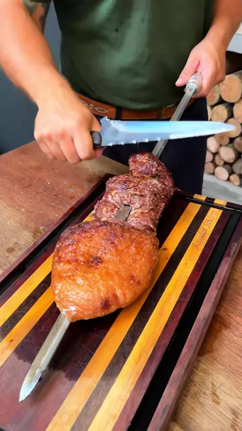 Um baita assado feito no espeto de madeira! 🔥 #assadorsincero #churrasco #carneassada #carnenoespeto