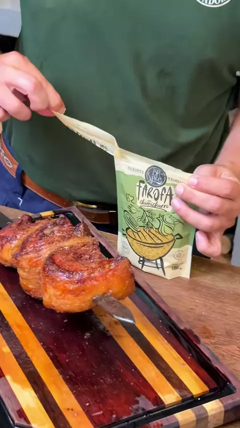 Uma ripa de costela sabe ser especial, mas fica mais caprichada se acompanhada de uma baita farofa! Aí tchê essa da @rochaalimentos é pra lá de bagual! #churrasco #assado #assador