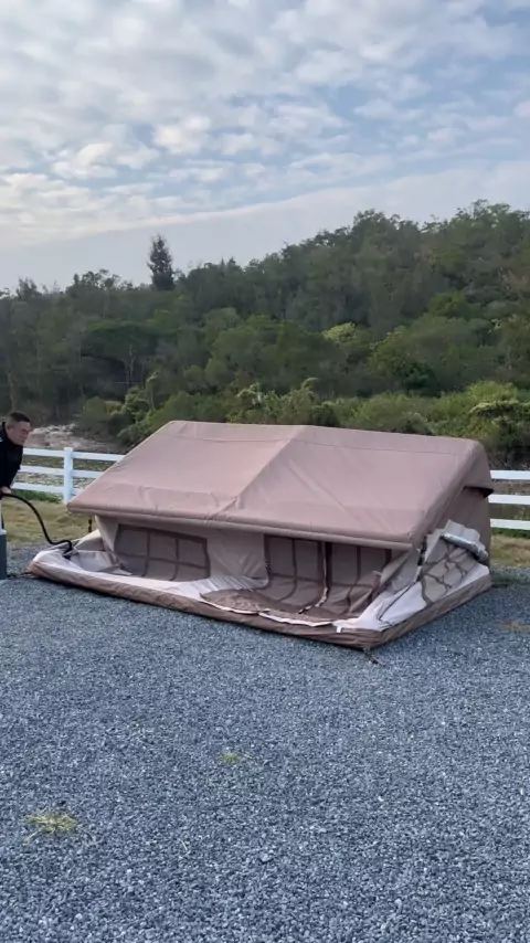 Viaje com uma casa inflável.