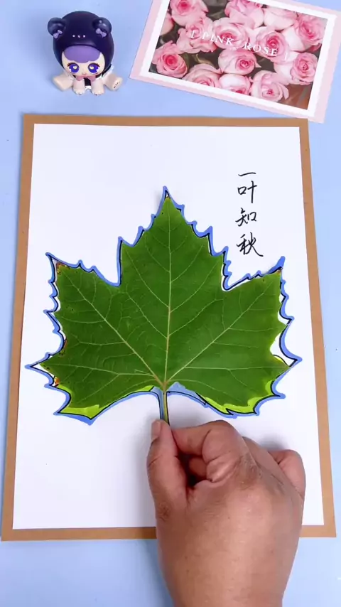 Puericultura Ir ao ar livre para cortar um pedaço de folhas de avião, acompanhar as crianças para desenhar roupas no tema de outono pintura criativa à mão!
