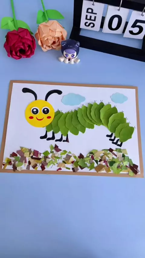 Acompanhe as crianças para pegar algumas folhas ao ar livre para fazer um adesivo manual de folha de lagarta de boa aparência! # Manual DIY