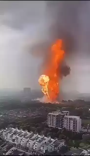 Explosão de gasoduto liberando um “jato” de fogo. #explosão