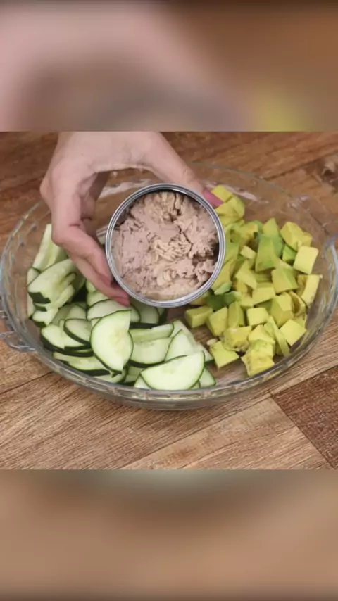 A melhor salada do mundo, super saborosa e fácil! Você tem que tentar fazer assim! #atum #pepino #abacate