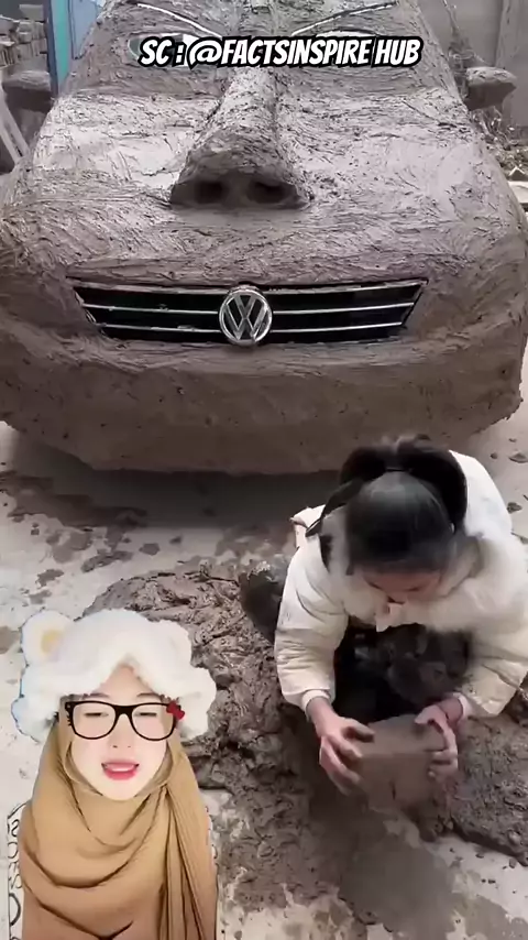 Mobil ayah penuh dengan tanah liat