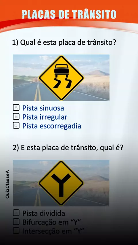Desafio com perguntas sobre placas de trânsito #quiz #placasdetransito #conhecimento #aprender