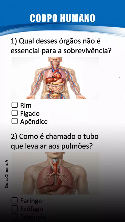 Quiz do Corpo Humano #quiz #corpohumano #anatomia #conhecimento #aprender