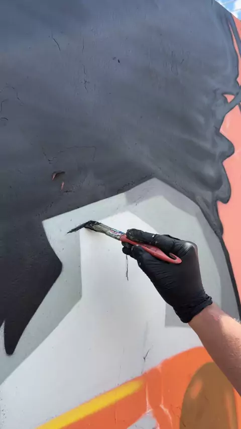 Graffiti do menino na parede abandonada