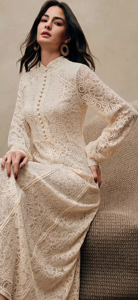 Vestido midi bordado, delicado e cheio de charme, perfeito para compor looks femininos e elegantes em ocasiões especiais. #VestidoMidi #modaevangélica #modafeminina #achadinhos #shopee