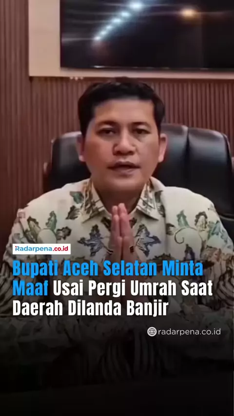 Bupati Aceh Selatan Mirwan MS menyampaikan permohonan maaf kepada Presiden hingga seluruh rakyat Indonesia setelah menuai keresahan karena pergi umrah bersama istrinya tanpa izin Gubernur Aceh, sementara daerahnya sedang dilanda banjir. Dalam unggahan di akun media sosialnya pada Selasa (9/12/2025), Mirwan berjanji akan bertanggung jawab penuh, bekerja keras memulihkan kepercayaan publik, dan memastikan kejadian serupa tidak terulang. —- #Radarpena #Radarpenanews #AcehSelatan #MirwanMS #BanjirA...
