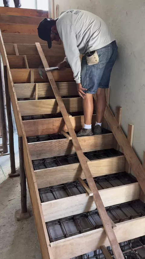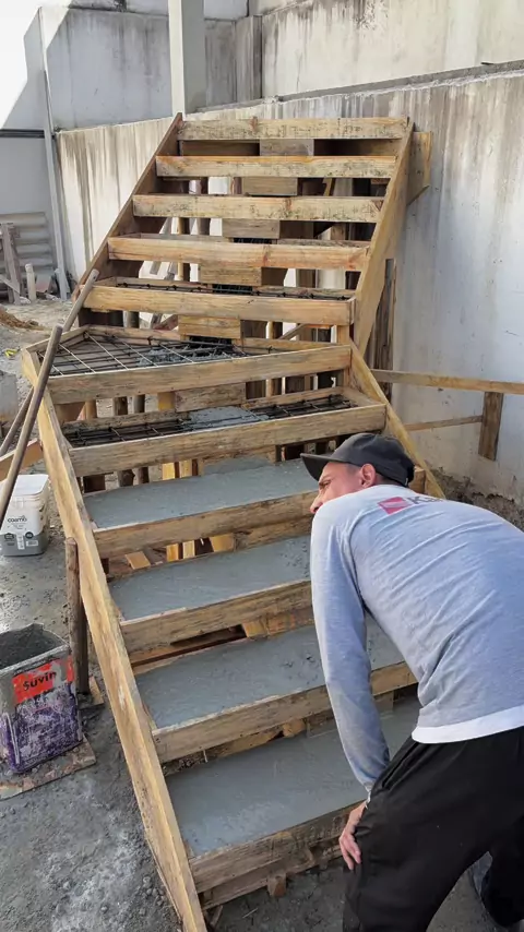 Escada cascata (plissada) Montamos forma,ferragem e concretagem 🤩👏🏼 Vem com nós 🙏🏽🔨e conheça um pouco mais do nosso trabalho, aproveite e siga nos aí por favor 🥺
