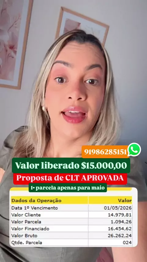 💼 Trabalha de carteira assinada? Então você pode ter crédito liberado agora, com desconto direto na folha e parcelas que cabem no bolso. ✔️ Pode ter mais de um empréstimo CLT ✔️ Taxas menores ✔️ Dinheiro rápido na conta 📲 Me chama no direct e faço a simulação pra você!