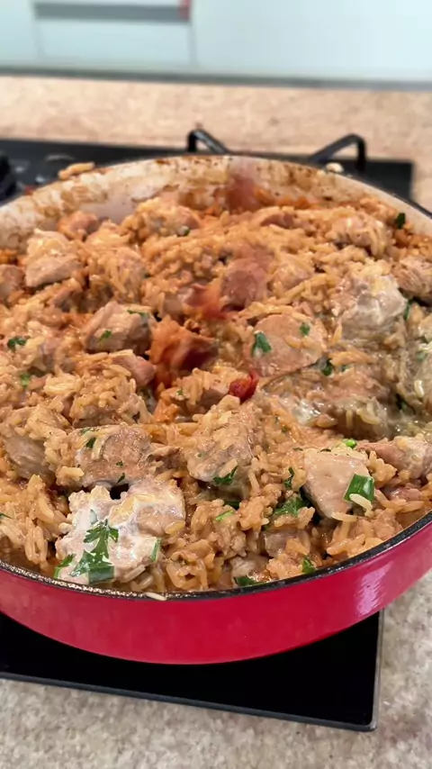 🍽️ Receita para 4 pessoas 📝 Ingredientes: 🥓 200g de bacon 🥩 500g de filé suíno em cubos 🧄 4 dentes de alho 🧂 Sal e pimenta a gosto 🍶 4 colheres de sopa de shoyu 🍚 2 xícaras de arroz 💧 4 a 5 xícaras de água (pra deixar bem molhadinho) 🧀 4 colheres de requeijão (200g) 🧀 80g de parmesão ralado 🌿 Cheiro verde a gosto Isso aqui não é uma receita… é uma experiência 🤌✨ Salva agora porque você VAI querer fazer esse final de semana 👇