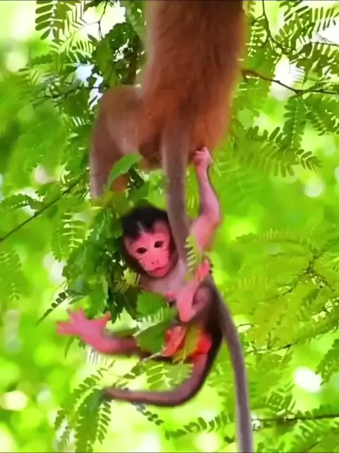 O macaquinho estúpido quase voou pela árvore.