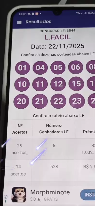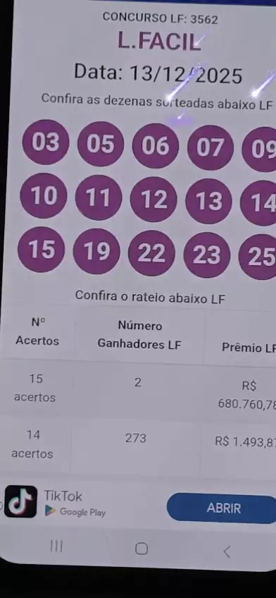 jogo de Lotofácil fechamento e demais loteria