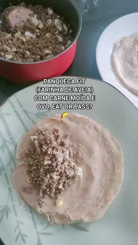 Panqueca fit, farinha de aveia, recheio de carne moída com ovo cozido #panqueca #fit #egg #farinhadeaveia #carnemoida 🌮