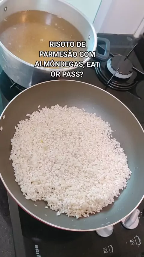Risoto de parmesão com almôndegas porque final do mês é assim né gente? filé mignon só no início ou no meio do mês, ainda mais que já estamos no dia 83 de janeiro kkkkkkk, inclusive até a manteiga já praticamente acabou e só coloquei aquele teco de nada ali, geralmente coloca mais Querem a receita também? me falem nos comentários #risotto #parmesão 👌🏻