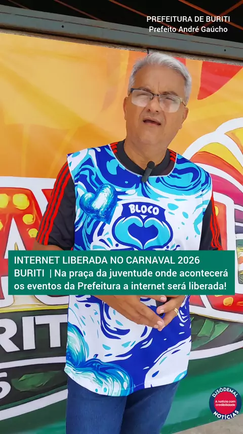 INTERNET LIBERADA NO CARNAVAL 2026 BURITI | Na praça da juventude onde acontecerá os eventos da Prefeitura a internet será liberada! PREFEITURA DE BURITI Prefeito André Gaúcho