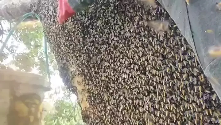 Replying to @ucrit538 sudah seperti kereta api kantong madunya cara panen madu mengunakan kantong plastik#berburu#madu#riau#viral