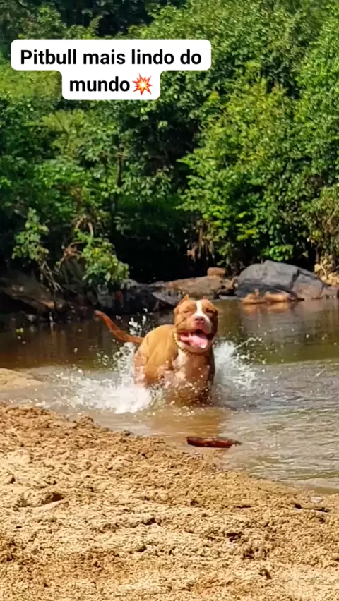 Pitbull se divertindo muito na cachoeira💥😍🐶 #meubichinho #pitbull #viral #kwai #dogs