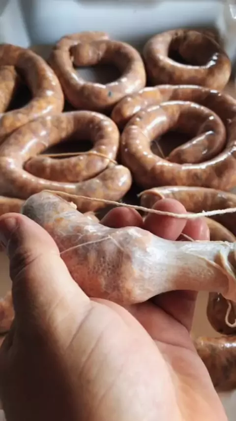Defumando linguiça e bacon na roça.