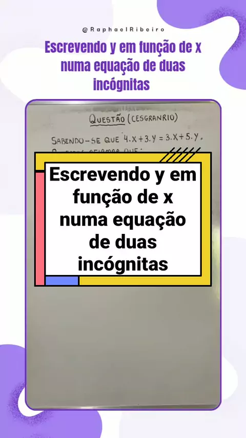 Escrevendo y em função de x numa equação de duas incógnitas. #matematica #equação #incognita
