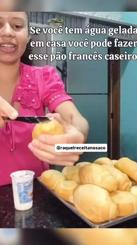 PÃO FRANCÊS CASEIRO Ingredientes • 1 kg de farinha de trigo • 10 g de açúcar (ou ½ colher) • 2 pacotes de fermento biológico seco (20 g) • 20 g de sal (ou ½ colher) • 2 colheres de margarina • 700 ml de água gelada 📌 Rendimento: cerca de 21 pães de aproximadamente 80 g cada. #paofrancescaseiro #receitanosaco #Receita #receitafacil