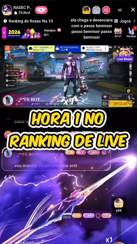 Mais uma TOP1 na live #FREEFIREE #FreeFireOficial #live #kwailive #Vem2026NoKwai