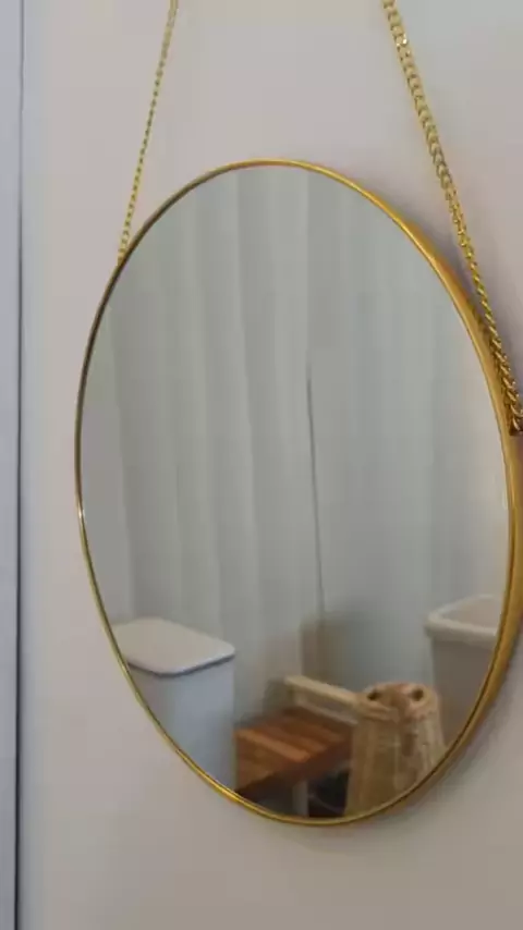 Cermin bulat dengan tampilan frame nya gold glossy diameternya 40 cm mewah dan elegan bangett😍#indorid#belilokal#furniture#cerminbulatgold