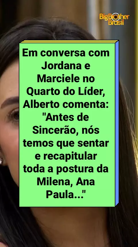 #BBB26 Em conversa com Jordana e Marciele no Quarto do Líder, Alberto comenta: "Antes de Sincerão, nós temos que sentar e recapitular toda a postura da Milena, Ana Paula..." #RedeBBB