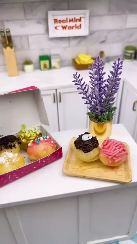 Mini cooking time 🥳 tiny custard donut🍩 grab this at realminiworld.com #minicooking #tinycakes #tinyfood #tinybaking #miniature