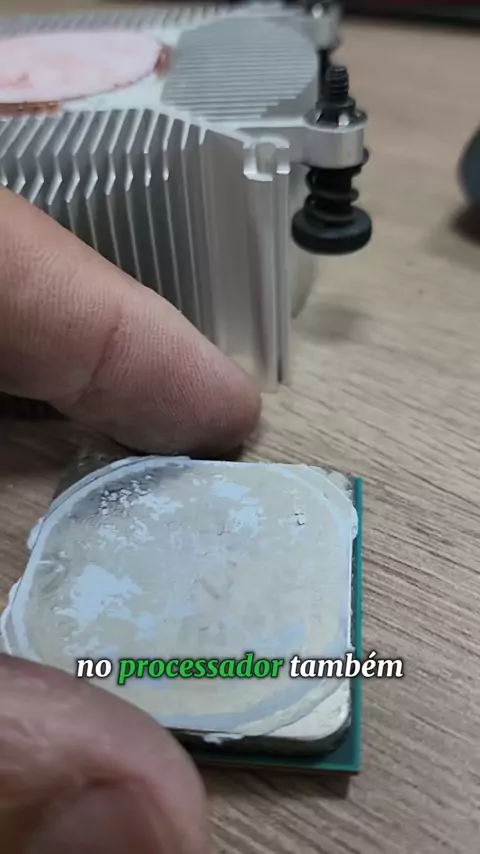 ​🚨 SEU PROCESSADOR ESTÁ EM RISCO! 🚨 ​Olha só o estado dessa pasta térmica de um processador AMD que chegou aqui! 😱 Completamente ressecada, virou pedra! ​A pasta térmica não é eterna! Com o tempo, ela resseca, perde totalmente a eficiência e seu PC ou notebook começa a superaquecer, travar e até corre risco de QUEIMAR componentes caros! 🔥 ​Não espere seu PC dar sinal de fumaça! A troca regular da pasta térmica é uma manutenção ESSENCIAL para a vida útil e performance da sua máquina. ​