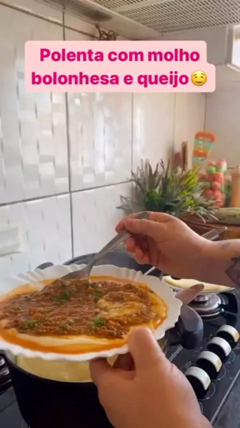 Polenta com carne moida e queijo #receitas #Comida #amocozinhar #viral #ValeuMãeKwai