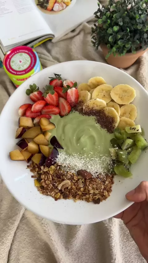 Matcha yogurt bowl👇 1 pote de iogurte natural 1 cchá de matcha 1 csp de mel Toppings (frutinhas, granola, coco e choco ralado)#FitTok#receitassaudaveis#matcha#matchayogurt#matchalatte