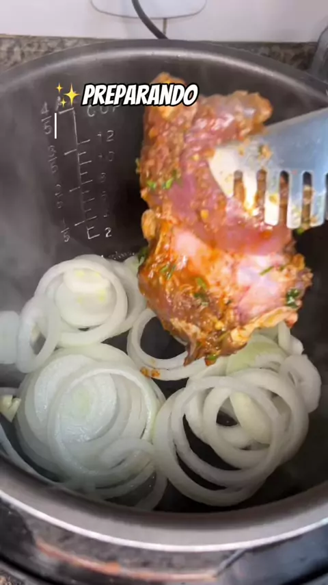 Joelho De Porco:Marinada (alho, corante, cominho, tempero do edu guedes, páprica defumada, pimenta do reino, vinho branco)1 dia marinando. Verduras(cebola,pimentão, tomate, cheiro verde #fy #receitas #comida #foryou #receita