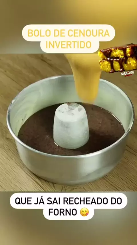 Bolo invertido de cenoura que já sai recheado do forno😋🥕🍩 já segue pra mais receitas 🤗 #bolodecenoura #estreladefamilia