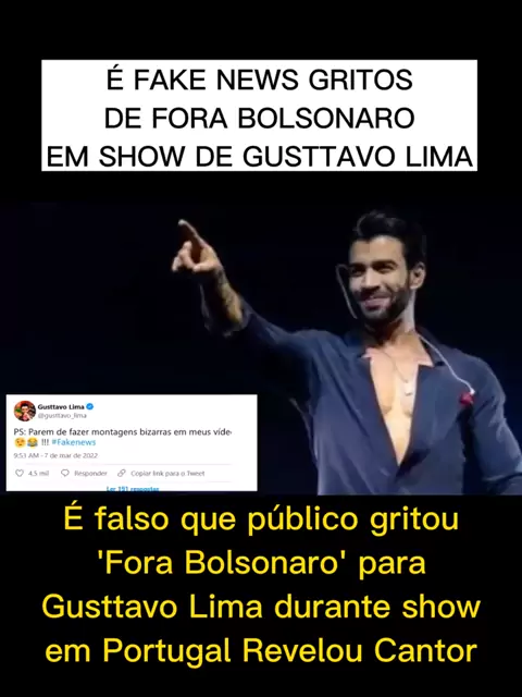 É falso que público gritou 'Fora Bolsonaro' para Gusttavo Lima durante show em Portugal Revelou Cantor #sertanejo #gusttavolima #Notícia #kwai #brasil