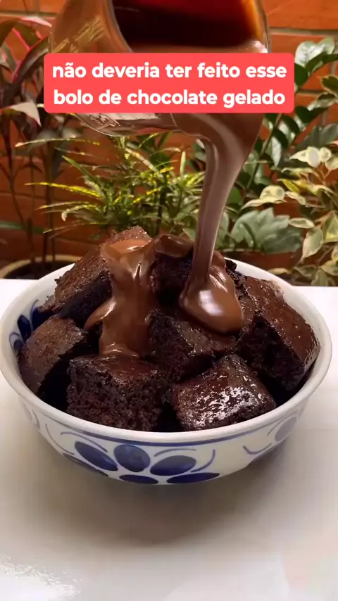 Ingredientes: Para a massa: 3 ovos; 3/4 de xícara de açúcar; 1/2 xícara de chocolate em pó; 2/3 de xícara de óleo; 1 xícara de água fervendo; 1 + 2/3 de xícara de farinha de trigo; 1 c/sopa de fermento químico; 1 c/cha de bicarbonato de sódio. Para a calda: 2/3 de xícara de leite; 2c/sopa de açúcar; 2c/sops de chocolate em pó 50%. Para a cobertura: 2 latas de leite condensado; 300ml de leite; 2 barras de chocolate; 1 c/sopa de manteiga gelada granulado #viral #bolo #chocolate #Receita #foryou