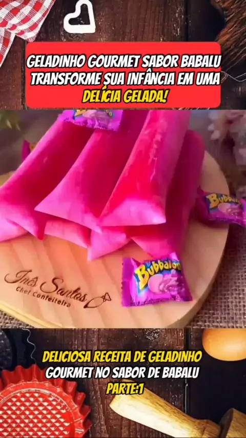 "Barbalu Gourmet: O Geladinho que Virou Febre!" INGREDIENTES: Calda 200 g de açúcar 180 ml de água 2 a 3 colher de sopa de pasta saborizante de chiclete Base 1 litro de leite integral 1 cx ou lata de leite condensado 200 g de creme de leite de caixinha 80 g de leite em pó 4 cl sopa de pó saborizante sabor chiclete 13 g de liga neutra 80 a 100 g de açúcar é opcional mas eu coloco pq acho que geladinho fica sem doce quando não coloco. Modo de preparo no vídeo #Receita