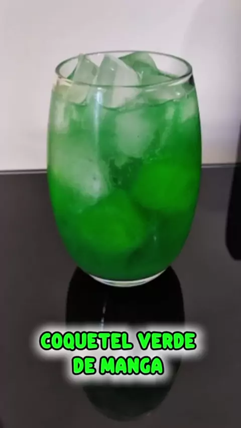 Coquetel verde de manga 1 dose de Suco de manga 20ml de Licor de menta 1 dose de Curaçau blue Sprite Em uma coqueteleira, adicione as doses de Curaçau blue, licor de menta e suco de manga, então mexa bem. Em um copo de sua escolha, preencha com gelo e adicione a bebida, por fim, complete com o refri de limão. #viral #viralvideos #viralreels #drinks #coquetel
