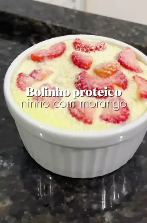 Bolinho proteico com morango 🍓 #Receitas saudáveis #receitas simples #culinária gastronomia #sobmesa saudáveis