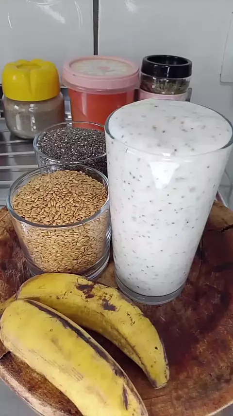 Smoorthie de linhaça dourada, chia e banana #VIRALIZAR