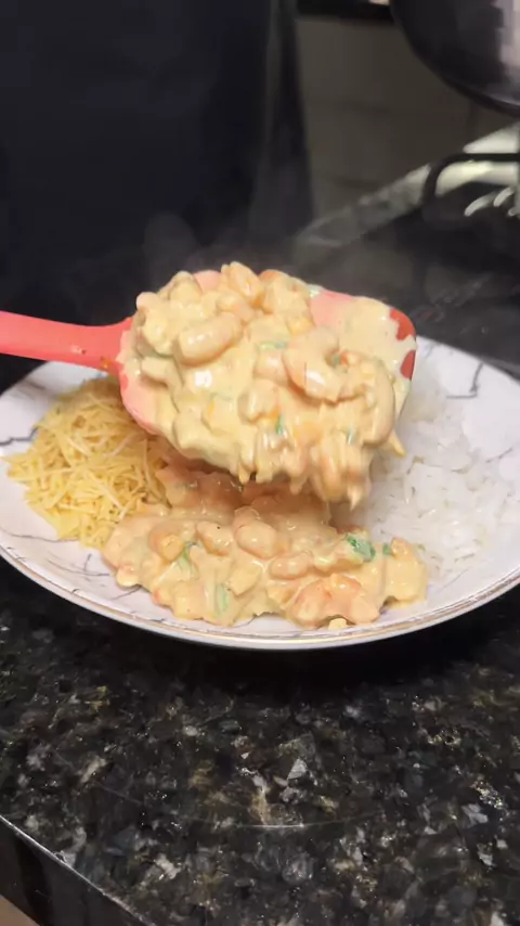 Strogonoff de camarão 🍤 Tem strogonoff de carne e frango… Mas de camarão 🤌😮‍💨 Ingredientes: 500g camarão 1 colher de manteiga 1 colher de azeite 1/2 cebola picada 1 colher de chá de alho 1 colher de ketchup 1 colher de mostarda 1 creme de leite Sal Pimenta Lemon pepper Páprica Coentro ou salsinha Acrescente o creme de leite com o fogo desligado! #receitas #comidas #Strogonoff #camarao #kwai