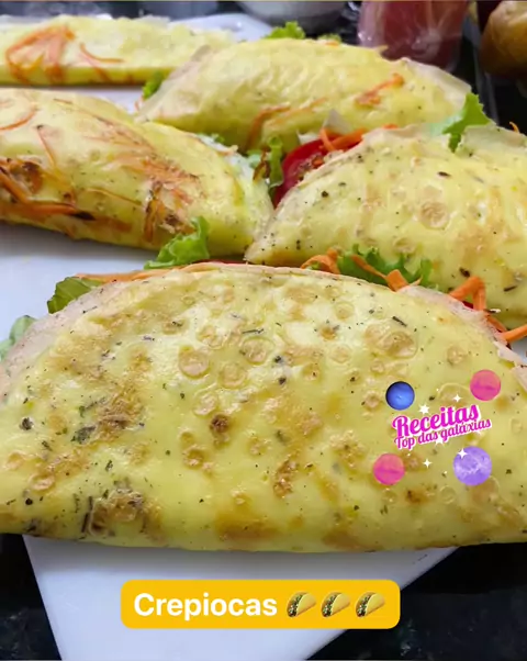 Para cada crepioca eu usei: 1 ovo e 3 colheres de sopa de goma de tapioca, e temperei com sal, ervas finas e lemon pepper. Mexa bem e leve para assar em frigideira antiaderente e asse dos dois lados e coloque o recheio da sua preferรชncia. Eu usei queijo coalho, tomate, alface e cenoura ralada. MOLHO: 1 pote de iogurte desnatado, ervas finas, lemon pepper e raspas de limรฃo. Esse molho รฉ puro frescor ๐Ÿ˜๐Ÿ˜‹